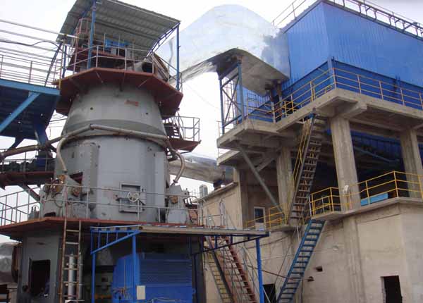 料床,物料同時受到磨盤上多個磨輥的碾壓,并被粉碎。在離心力的連續驅動下物料不斷向磨盤外緣運動,離開磨盤的物料遇到通過風環進入磨內的熱氣體并隨之上升,經磨機中部殼體進入到分離器中,在此過程中物料與熱氣體進行了充分的熱交換,水分迅速被蒸發。選粉機控制著輥磨出口的成品細度,大于規定尺寸的顆粒被分離,并落回至磨盤,滿足細度要求的物料通過選分機進入成品倉。